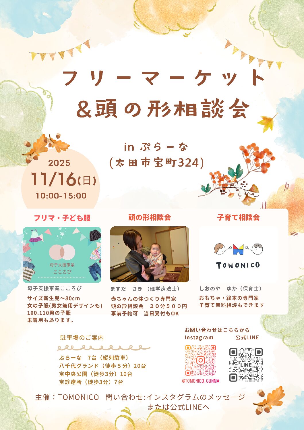 \ フリーマーケット&頭の形相談会 開催 /親子で楽しめるイベントを開催します🎪かわいい子ども服から、赤ちゃんの頭の形相談・子育て相談まで。ほ…