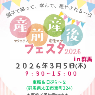 3/5【産前産後フェスタin群馬】日時: 2026年3月5日(木)9:50~15:00 受付9:30~会場: 宝庵&…