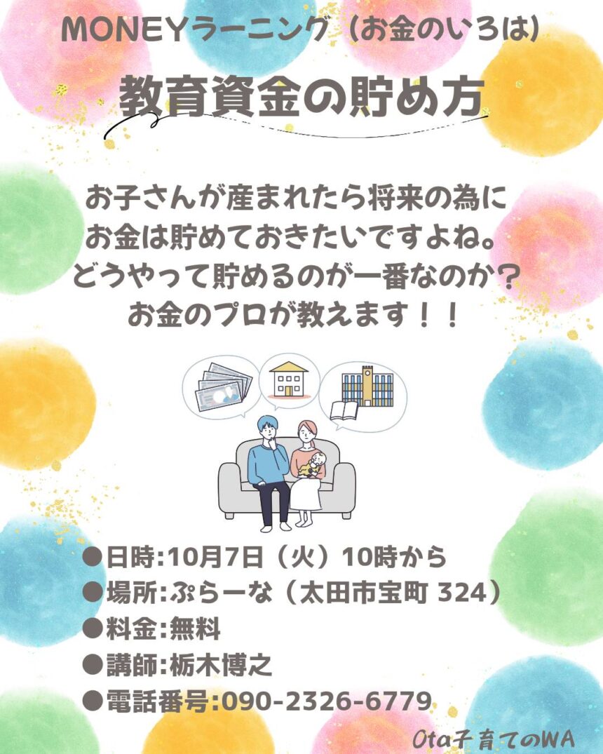 #太田市 #みどり市 #桐生市 #館林市 #子育て #親子講座 #ヨガ #リトミック #マタニティ #妊婦 #親子 #子育て支援 #産後 #ママ #パパ #リフレッシュ #保険 #教育資金 #将来のお金 #お金の勉強 #Ota子育てのWA